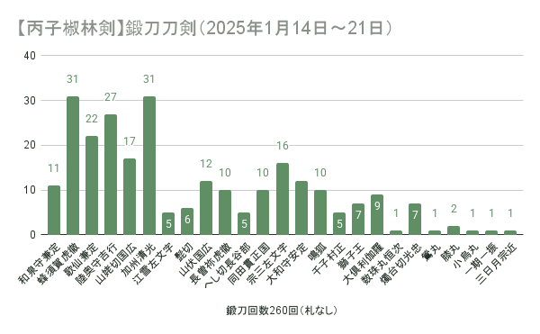 ゲーム #刀剣乱舞 #記録 残り資源が65万になっちゃった鍛刀結果。 大慶くんは440回で3振り、九鬼くんは240回で2振り。九鬼くんの鍛刀で途中から鍛錬所分の10連を1日1回ずつに切り替えたけど手遅れだった 【大慶直胤】鍛刀刀剣(2025年1月1日~3日)の集計 【九鬼正宗】鍛刀刀剣(2025年1月4日~6日)の集計