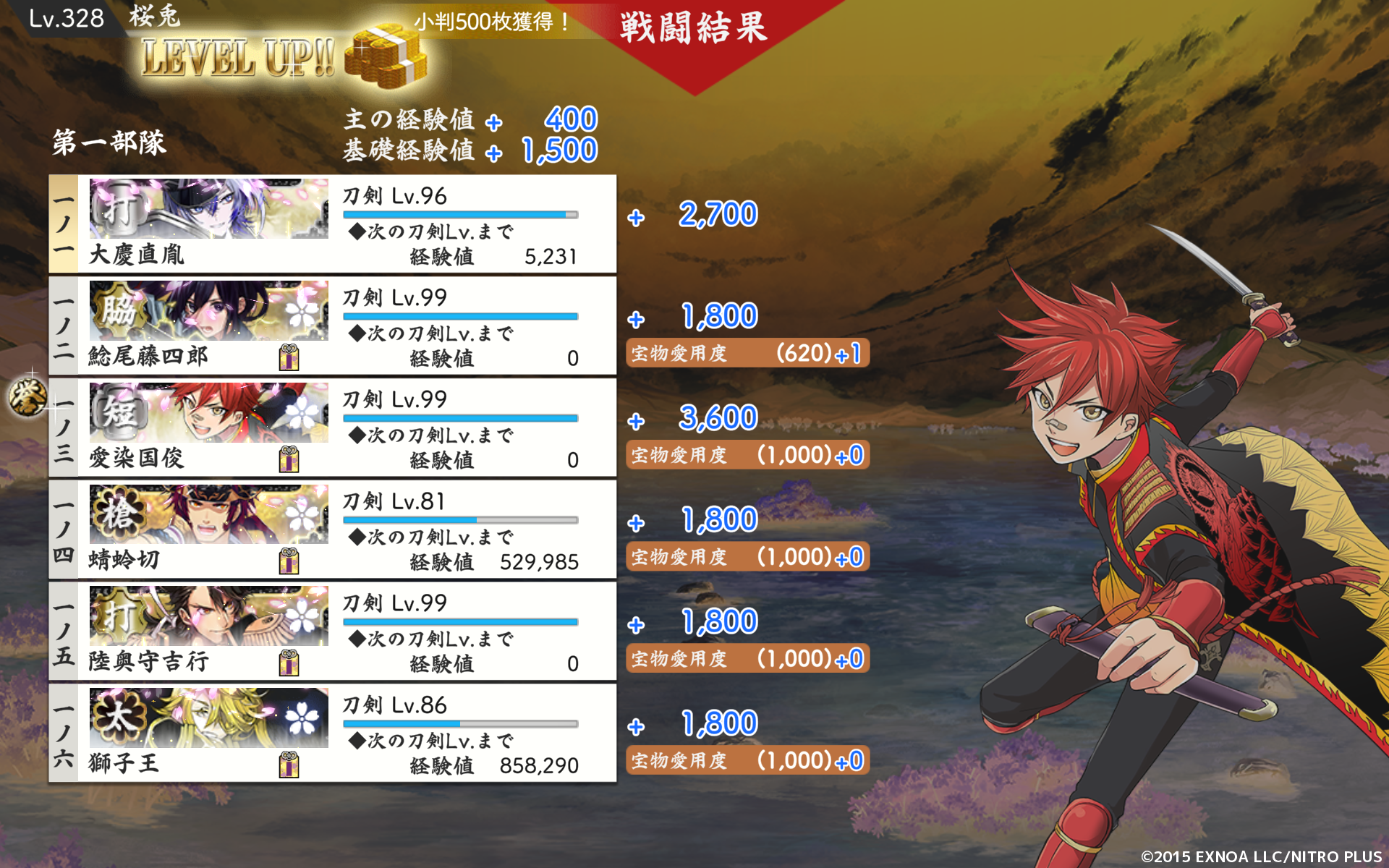 ゲーム #刀剣乱舞 ふと刀剣男士の顕現日を確認してみたら、初太刀の獅子王くんはとうらぶを始めた日に入手していたことに気付いた。まさかの初日組。 入手するのが遅かったと記憶していた初脇差の鯰尾くんは、その2日後に顕現していて全然遅くない。