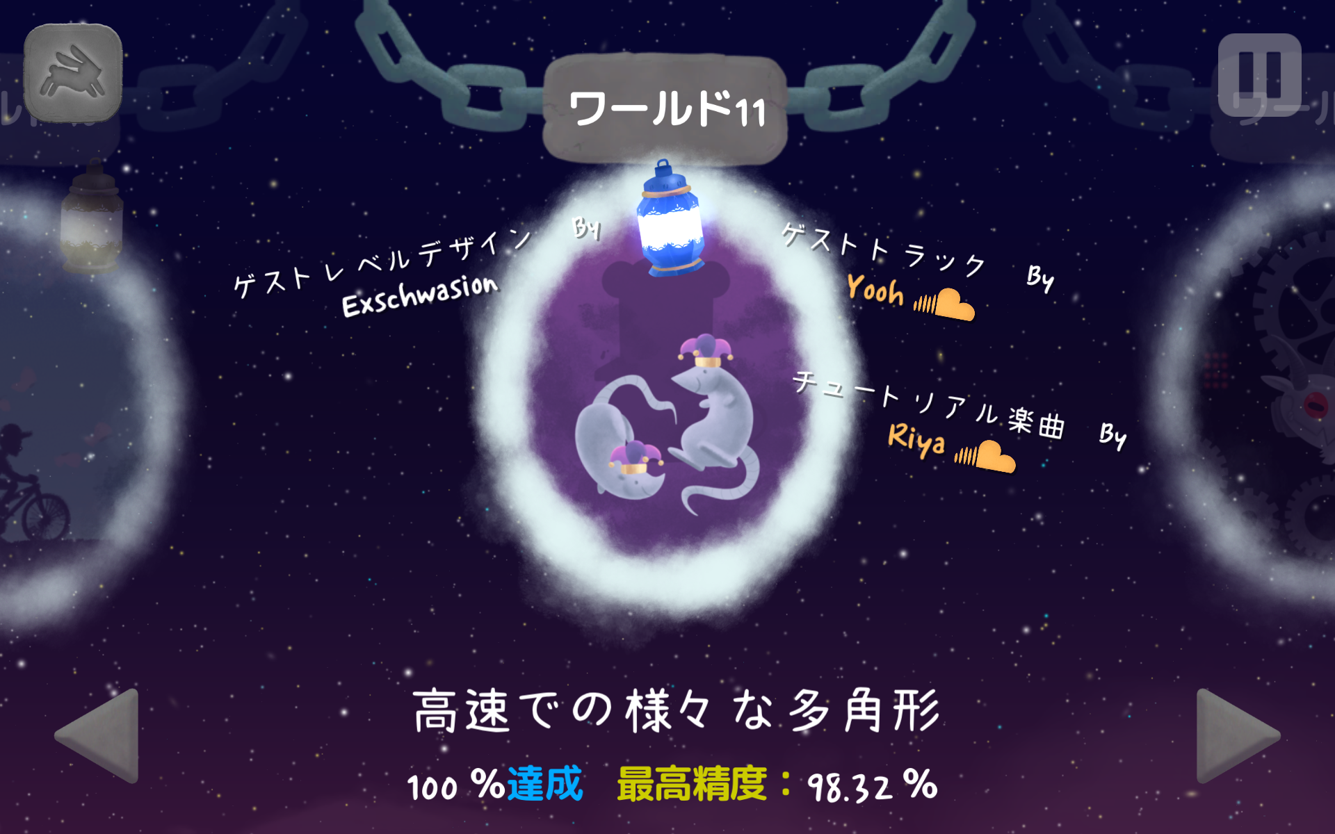 ゲーム #ADOFAI ワールド11よりかは沼らずにワールド12クリア。それでも挑戦回数150回以上200回以内。 ここから精度上げられるかな。パーフェクト実績取れるかな ワールド11は頑張れば取れそうな雰囲気だったけど、最初の中間地点の先にあるたこ地点周辺が抜けられなくなって詰んでる。 ワールド12 100%達成